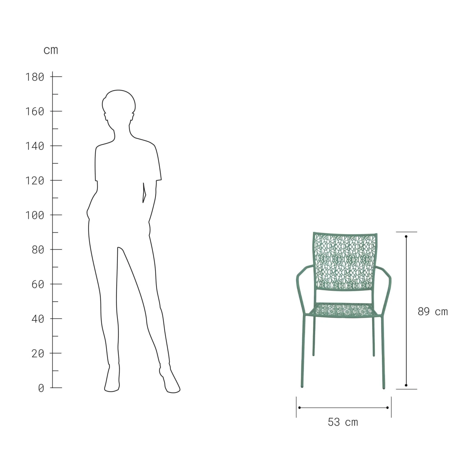 Breite 53 x Tiefe 46 x Höhe 89 cm, Sitzhöhe 46 cm
