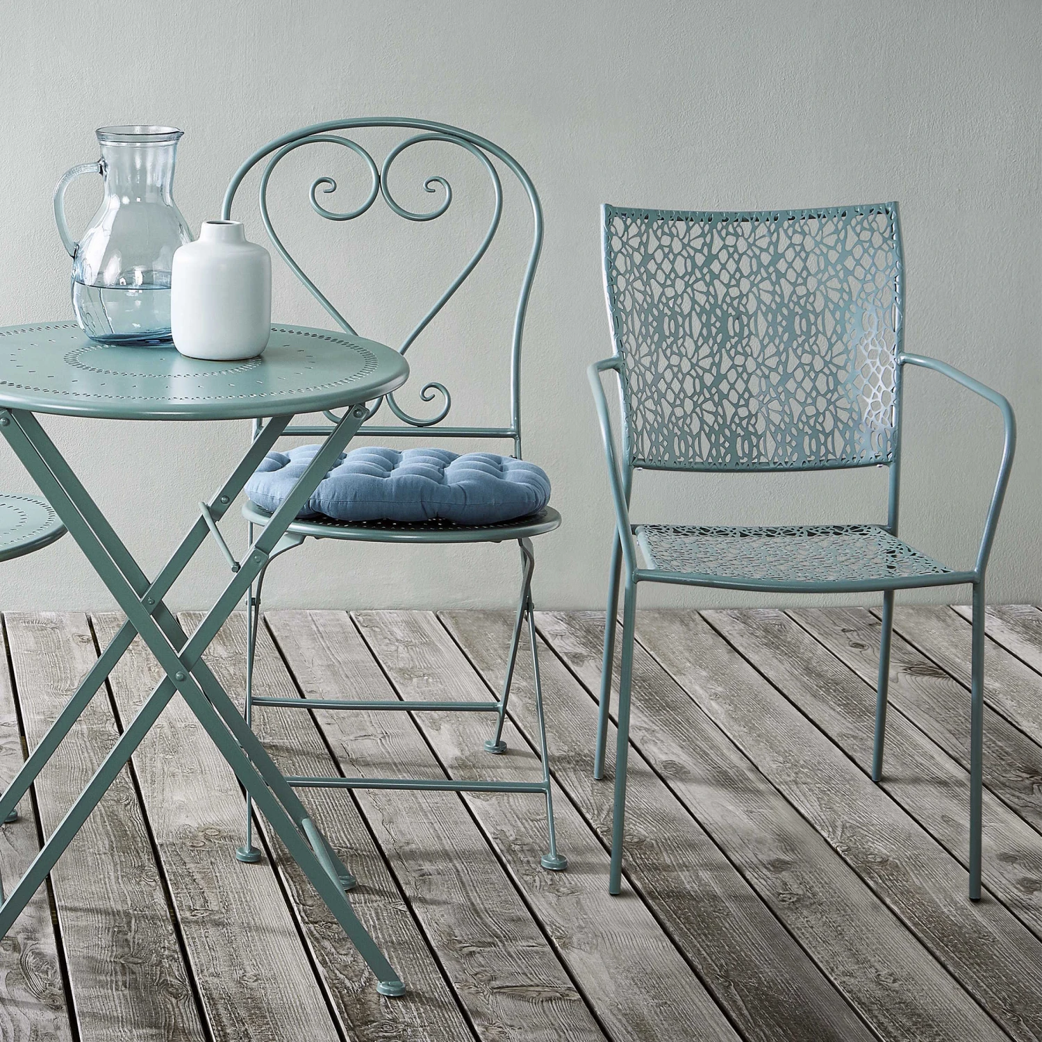 Moderner Look mit romantischem Akzent: Beim stapelbaren Nancy Gartenstuhl aus Eisen für Balkon, Terrasse oder Garten erinnern Sitzfläche und Rückenlehne an filigrane Spitze. Einfach wunderbar, um draußen vor sich hin zu träumen. In weiteren Farben erhältlich.
