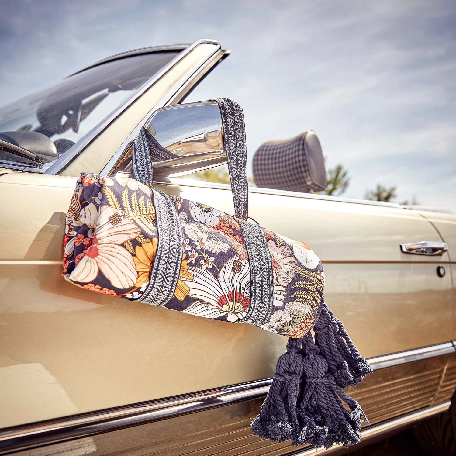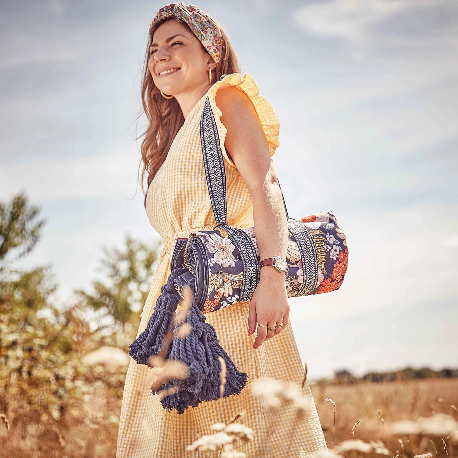 Auch wenn Sie auf der grünen Wiese oder am Strand sitzen, picknicken Sie inmitten von hübschen Blumen mit der Between Flowers Picknickdecke. Diese dekorative Picknickdecke im angesagten Boho-Stil mit Troddeln bringt praktischerweise einen optisch perfekt harmonierenden Tragegurt mit, so dass Sie sich die Decke einfach umhängen können. Aus reiner Baumwolle, Rückseite uni, in Creme und Blau erhältlich.