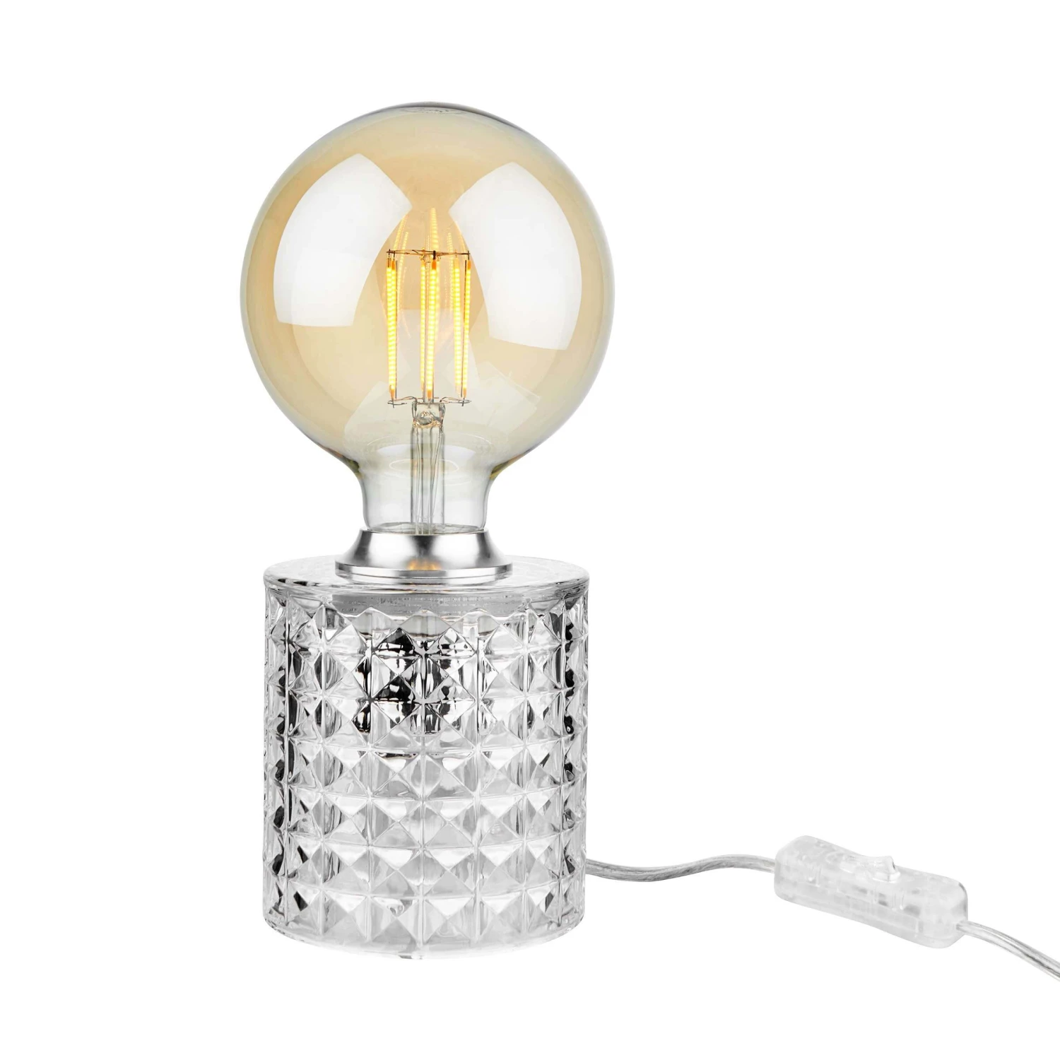 Glamour pur: Die Stilo Tischleuchte aus Glas ist so ziemlich das Dekorativste, was einer trendigen Glühbirne (nicht im Lieferumfang enthalten) passieren kann. Mit Kippschalter. Weitere Varianten erhältlich.